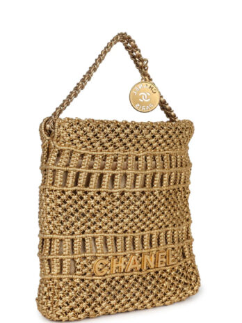 Chanel Mini 22 Bag Metallic Gold Macrame Calfskin Gold Hardware